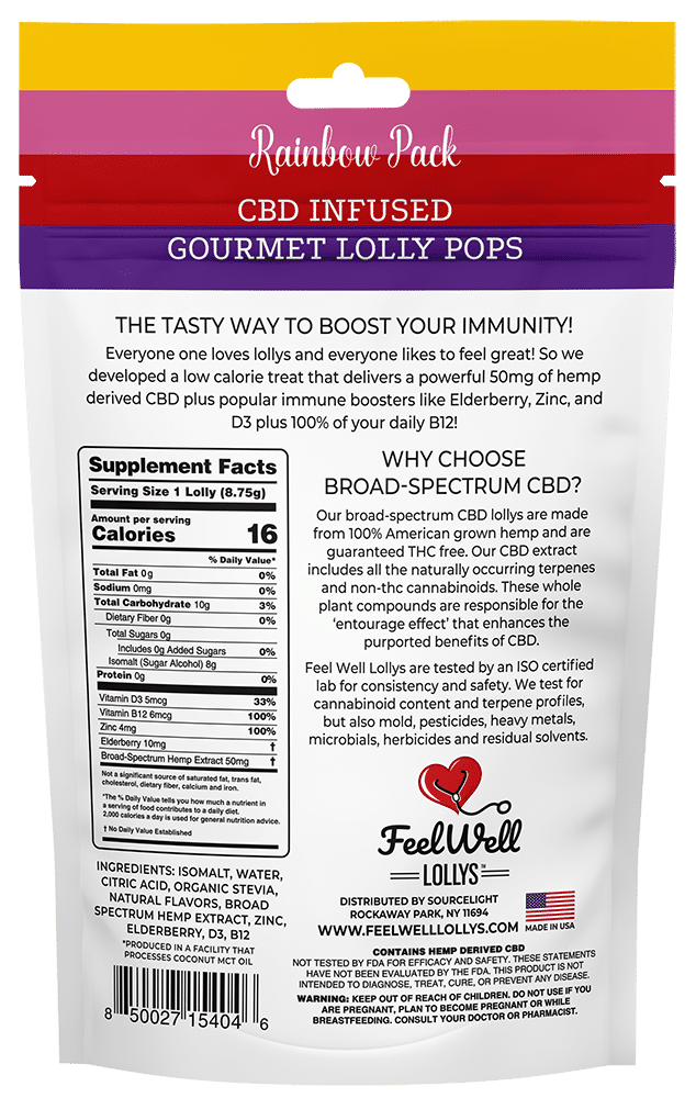 Rainbow Pack Feel Well Lollys CBD Infused Lollipops for Immunity Support.